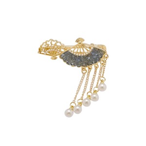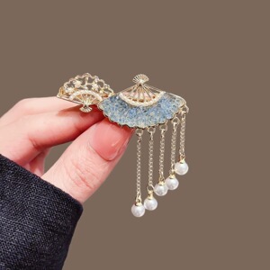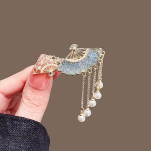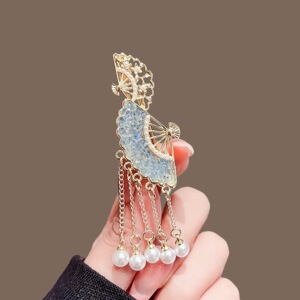 女性用クリスタル扇形タッセルヘアピン 2025 新しい気質サイド前髪クリップファッショナブルな額の髪ダックビルクリップ