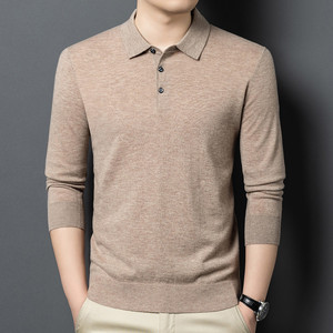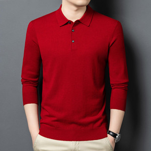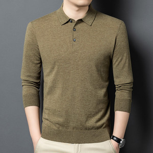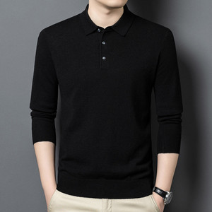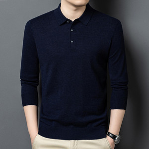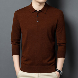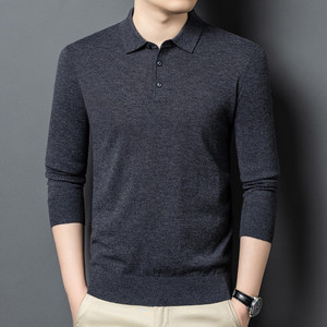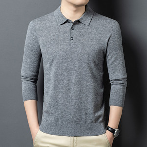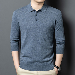 100% 羊ウールセーターメンズ長袖ポロシャツラペル無地多用途メンズニットボトムシャツ卸売セーターメンズ