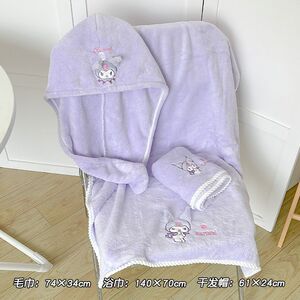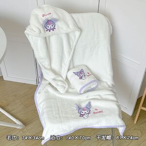 クロミ コーラルベルベットタオル 漫画刺繍 吸水性シャワーキャップ 3点セット 毛が抜けにくい 学生 かわいいバスタオル