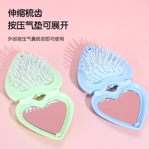 爱心折叠镜梳女士顺发造型气垫梳子干湿两用梳按摩头皮气垫梳子