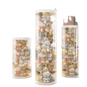 筒公仔收纳毛绒娃娃玩偶布防尘玩具收纳箱透明收纳桶儿童圆柱包邮