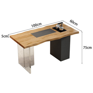 【整板茶桌】100*60*75*5cm(镶嵌乌金石茶盘+电磁炉)