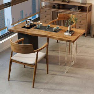 现代简约家用功夫泡茶桌新中式实木茶台茶桌椅组合原木阳台小户型