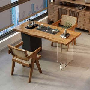 【整板茶桌】140*60*75*5cm(镶嵌乌金石茶盘+电磁炉)
