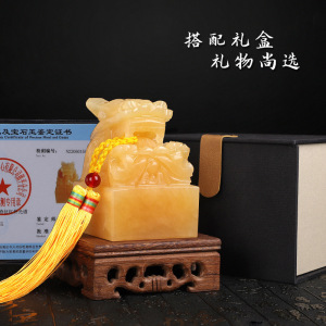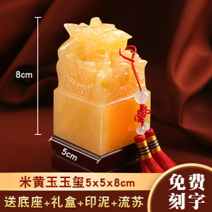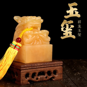 玄碩黄玉九龍玉印飾り龍印篆刻伝国福玉印富を引き寄せる大印オフィス