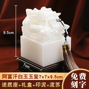 アフガニスタン白翡翠 4x7cm (台座、ギフトボックス、インクパッド、タッセル付き)