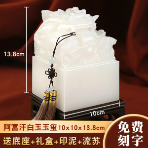 アフガニスタン白翡翠 10x13.8cm (台座、ギフトボックス、インクパッド、タッセル付き)