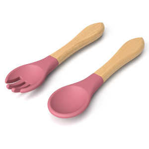 ピンク[木柄フォーク+スプーン]