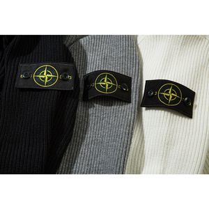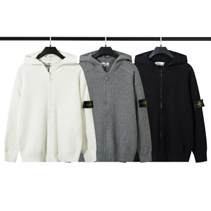 跨境STONE石头岛拉链开胸袖章连帽针织简约纯色男女毛衣长袖纯棉