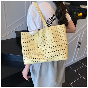 バッグ ニッチ レディース 通勤 大容量 万能デザインバッグ 2025 新作 中空トート 夏 シングルショルダー シンプル