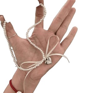甘くてクールなリボンリボンラブパールネックレス女性のニッチ気質鎖骨チェーンネックレスチョーカーアクセサリー女性用