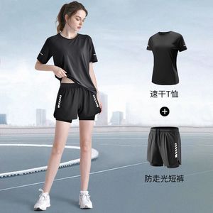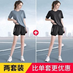 スポーツスーツ女性の夏のマラソンランニング新しいヨガアイスシルク速乾性半袖トレーニング大きいサイズのフィットネス服
