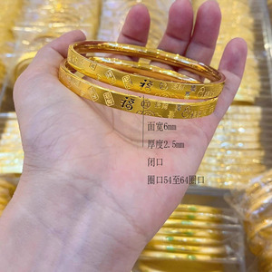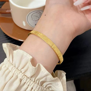 新中式国潮风CNC爆闪吉言手镯平安健康招财纳福吉祥镯子妈妈礼物