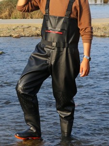 下水裤雨鞋连体半身加厚皮叉背带雨裤防水挖藕路亚钓鱼裤耐磨水叉