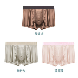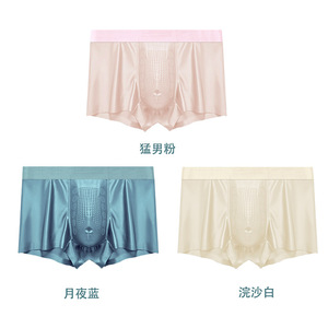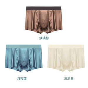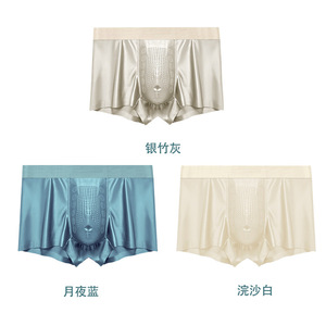 25年新作高級サテンメンズ下着、メンズアイスシルク下着、抗菌マルベリーシルククロッチ通気性ボクサーブリーフ