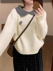 甜美可爱淑女风小翻领毛衣冬季新款韩版百搭休闲显瘦针织衫