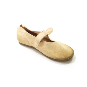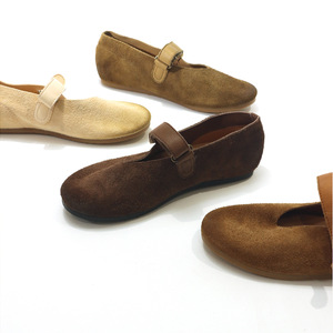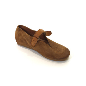 复古浅口手工平底魔术贴奶奶鞋一字扣牛反绒休闲玛丽珍鞋ZH591-1
