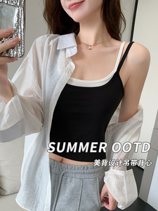 H166 偽ツーピース女性用サマースリムフィットキャミソール、胸パッド付き、ホットガールが外で着用できるトップス