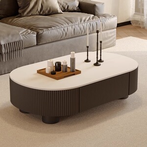 クリームオーバルロックボードコーヒーテーブルリビングルーム新しい家庭用小型収納モダンシンプルハイエンドライトラグジュアリー