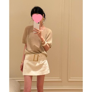 韓国風高級カーキセーターTシャツレディース夏ハイウエストスリムホワイトAラインスカート2点セット
