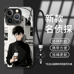 名探偵新小蘭 Apple 16 携帯電話ケース ストラップ付き 15promax ガラス 13 漫画 14 カップル