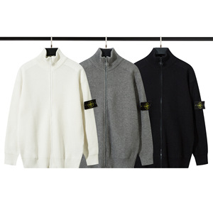 跨境STONE石头岛罗盘袖标拉链开胸立领针织毛衣百搭简约男女外套