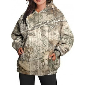 Amazon 秋の新作女性迷彩パーカーメープルリーフプリント特大スポーツフード付きスウェットシャツポケット付き