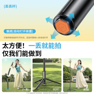 1.7米【一体式隐藏收纳】轻质铝合金丨蓝牙遥控器丨手持/直播自拍丨落地一键弹开