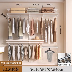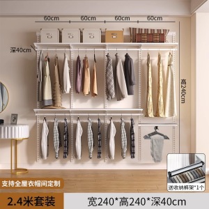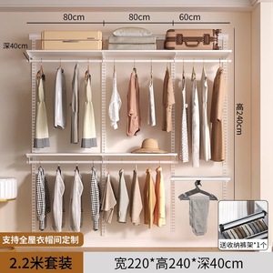 衣帽间开放式家用卧室衣橱柜步入式钢制整体租房衣柜挂衣区衣帽间