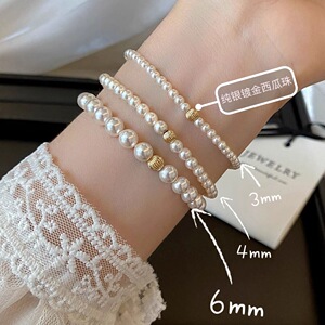 Xiaohongshu 人気の真円形 Shijia パールブレスレット s925 スターリングシルバー K ゴールドメッキスイカビーズ弾性ロープオリジナルブレスレット