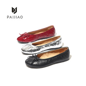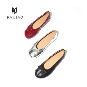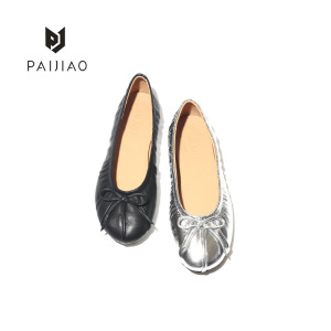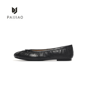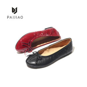 羊皮褶皱蝴蝶结手工真皮圆头软底防滑透气吸汗一脚蹬单鞋ZG1337-1