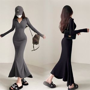 辣妹纯欲风法式御姐鱼尾连衣裙女秋季新款紧身显瘦包臀慵懒风长裙