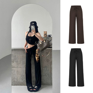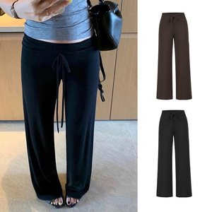 Moses Queen/魔西女王慵懒垂感凉爽显瘦抽绳中低腰直筒裤长裤女夏