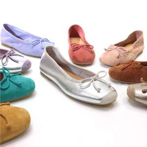 圆头羊皮法式复古简约百搭蝴蝶结浅口低跟磨砂软底芭蕾鞋XD3779-1