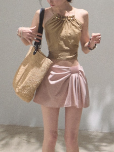 『銀河のロマンス』リヨセルリネンウエストロゴレザーラベルおしゃれシルエットAラインスカート