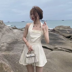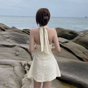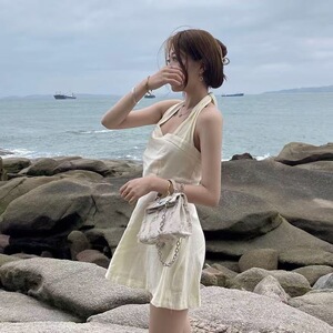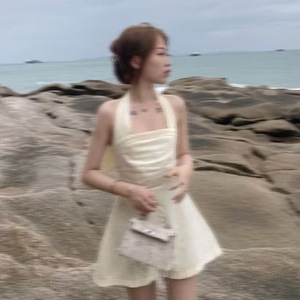 Pure Desire ホルターネックオフショルダードレス女性の夏のデザインセクシーなホットガール痩身インナーパックヒップショートスカート