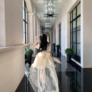 拖尾裙-可拆卸裙摆+大蝴蝶结