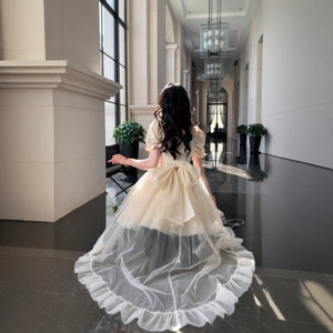 杏色裙+拖尾裙-可拆卸裙摆+大蝴蝶结