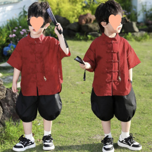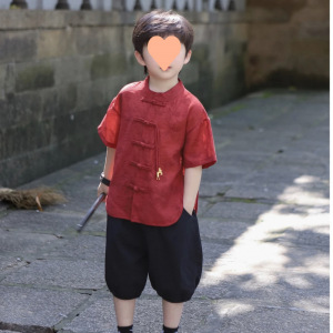 男の子の新しい中国風の漢服と唐服、中型と大型の子供用中華民国風刺繍レトロインターネットセレブ花柄シャツスーツラウンドネックトレンディ