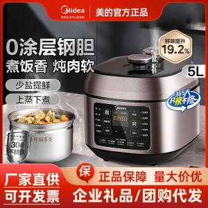 美的电压力锅家用智能5升0涂层不锈钢大容量电高压锅双内胆C540G