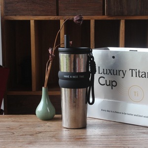 純チタンストローカップ 710 ミリリットル大容量ポータブルドリンクコーヒーティーカップ女性のギフトストラップ付きマルチカラー