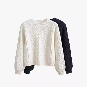 外国貿易ラウンドネックカラーセーター女性のための新しいスタイルツイストショートルーズ痩身厚いプルオーバーセーター女性のための