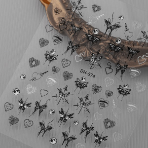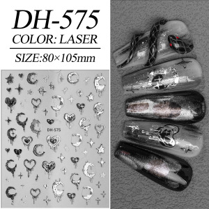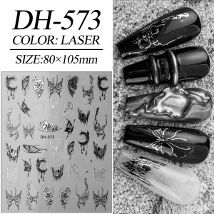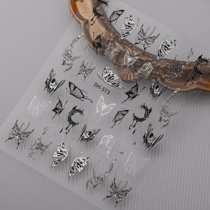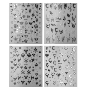 液体シルバー蝶ネイルアートステッカーフラットホットガールダークスタイル紙溶岩星と月ネイルステッカージュエリー DH スタイル