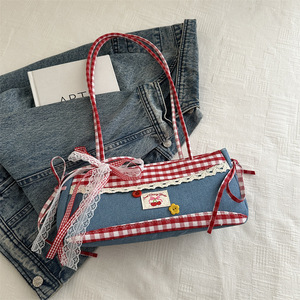 2025 新韓国スタイルレースチェック柄多用途ショルダーバッグポータブル学生脇の下バゲットバッグ女性のための大容量