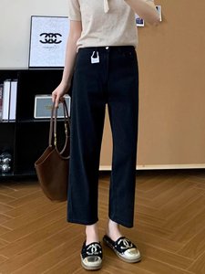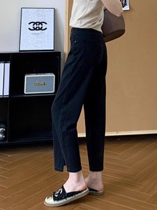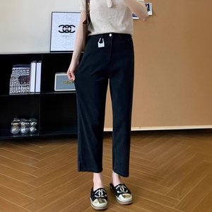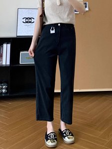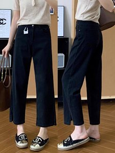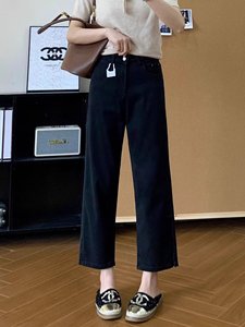黑色天丝九分直筒牛仔裤女夏季薄款大码小个子高腰显瘦开叉阔腿裤