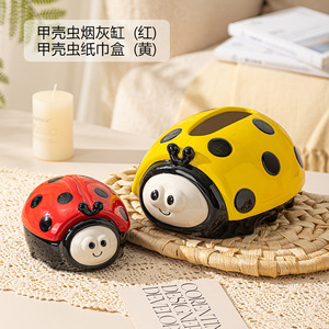 新しいてんとう虫ティッシュボックス収納装飾品デスクトップクリエイティブパーソナライズされた飛散防止灰皿ホームかわいい装飾品
