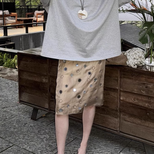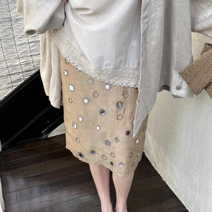 Owis 收藏级手工缝制镜片真丝半裙桑蚕丝高定双层直筒裙2025夏季