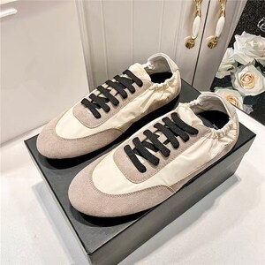 高版本P家2025春季真皮德训鞋女芭蕾舞平底休闲运动阿甘鞋小白鞋