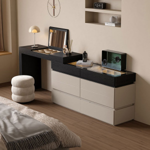 イタリアンスタイルのミニマリストドレッシングテーブル、引き出しとキャビネットが一体化したキャビネット、モダンな寝室、シンプルなベッドサイド、高度な多機能化粧台収納