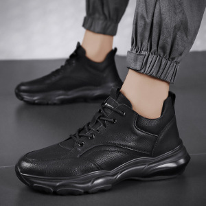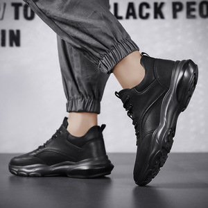 秋季纯黑厨师厨房专用鞋增高皮鞋男防水防滑防油耐脏工作上班潮鞋